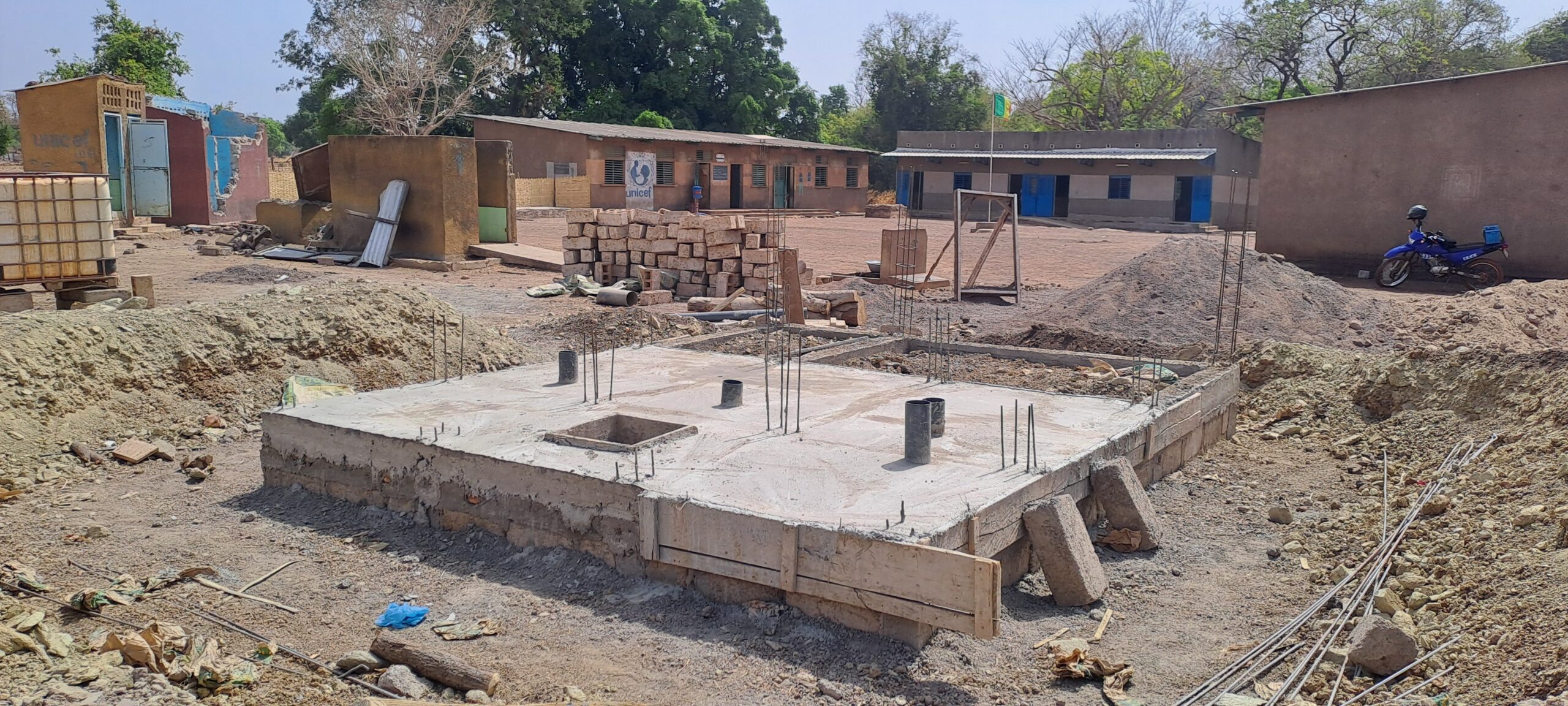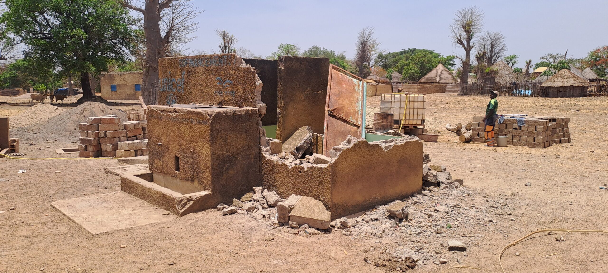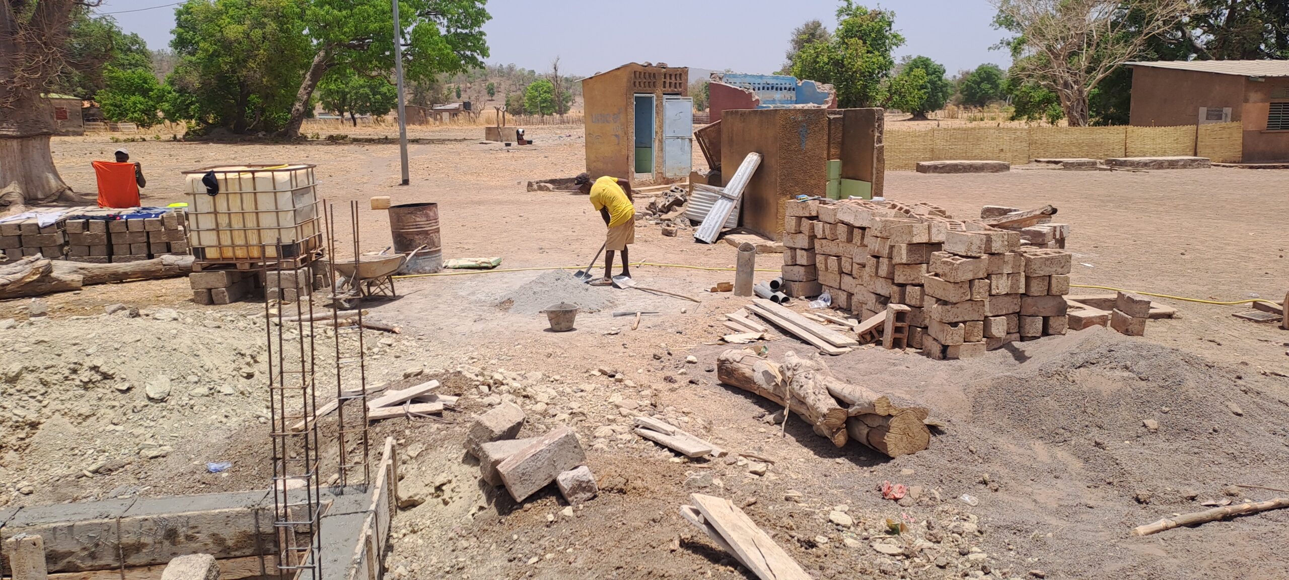 Concernant l’assainissement, la construction de nouvelles latrines est actuellement en cours dans plusieurs écoles de la commune. Le projet prévoit également la démolition des anciennes latrines devenues non fonctionnelles et dangereuses. Une autorisation officielle de destruction a été délivrée par l’inspection académique, garantissant une coordination efficace avec les services de l’État. À l’école élémentaire de Thiabédji, les anciennes installations ont ainsi été détruites pour laisser place à des équipements modernes, plus sûrs et mieux adaptés aux besoins des élèves (voir photos).Dans les cases de santé, les latrines ont été directement intégrées aux bâtiments afin d’assurer un accès sécurisé aux patients. Une latrine dédiée au personnel a également été ajoutée, alors que le projet initial prévoyait des structures séparées.